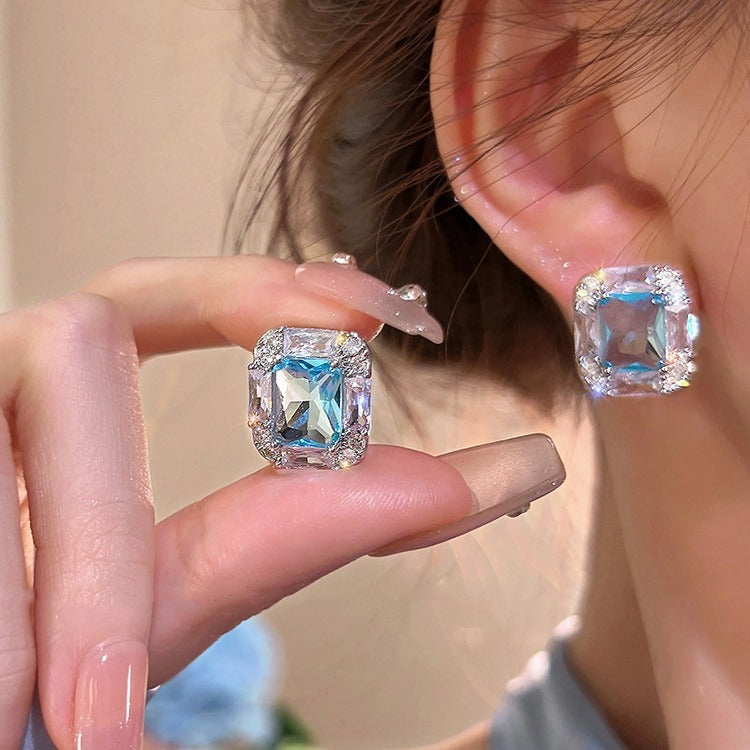 Aquamarine Square Sugar Stud Earrings For Women